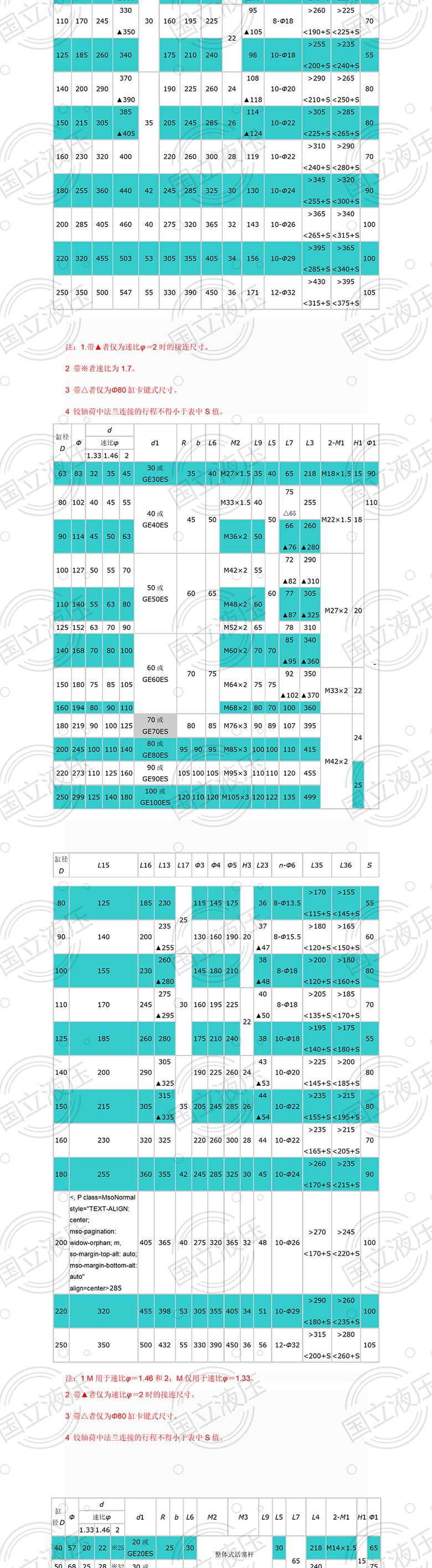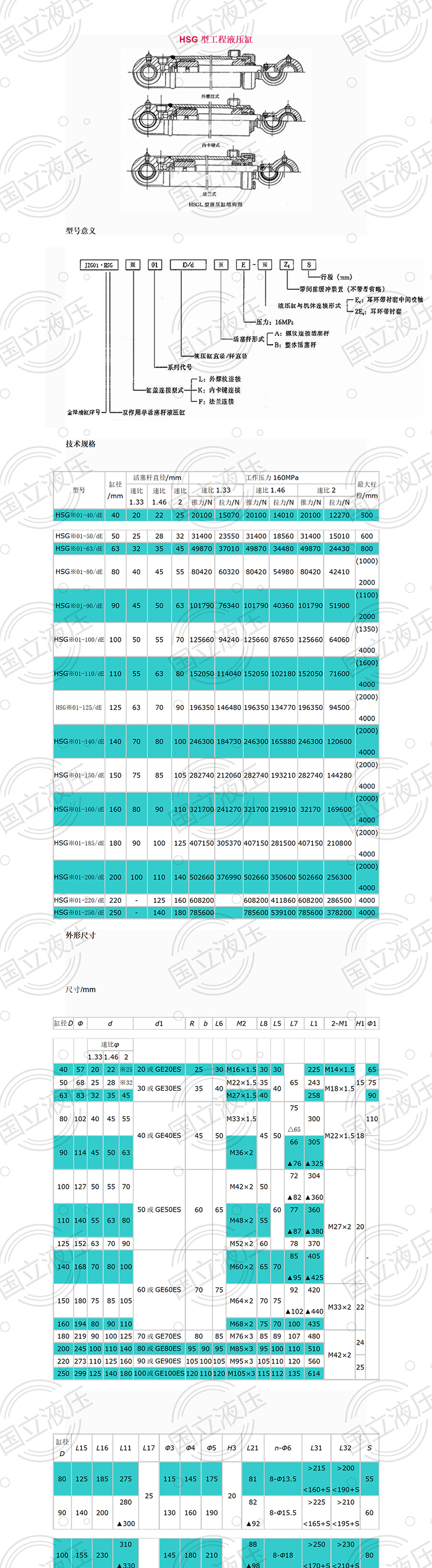 國(guó)立液壓HSG工程型液壓缸型號(hào)參考